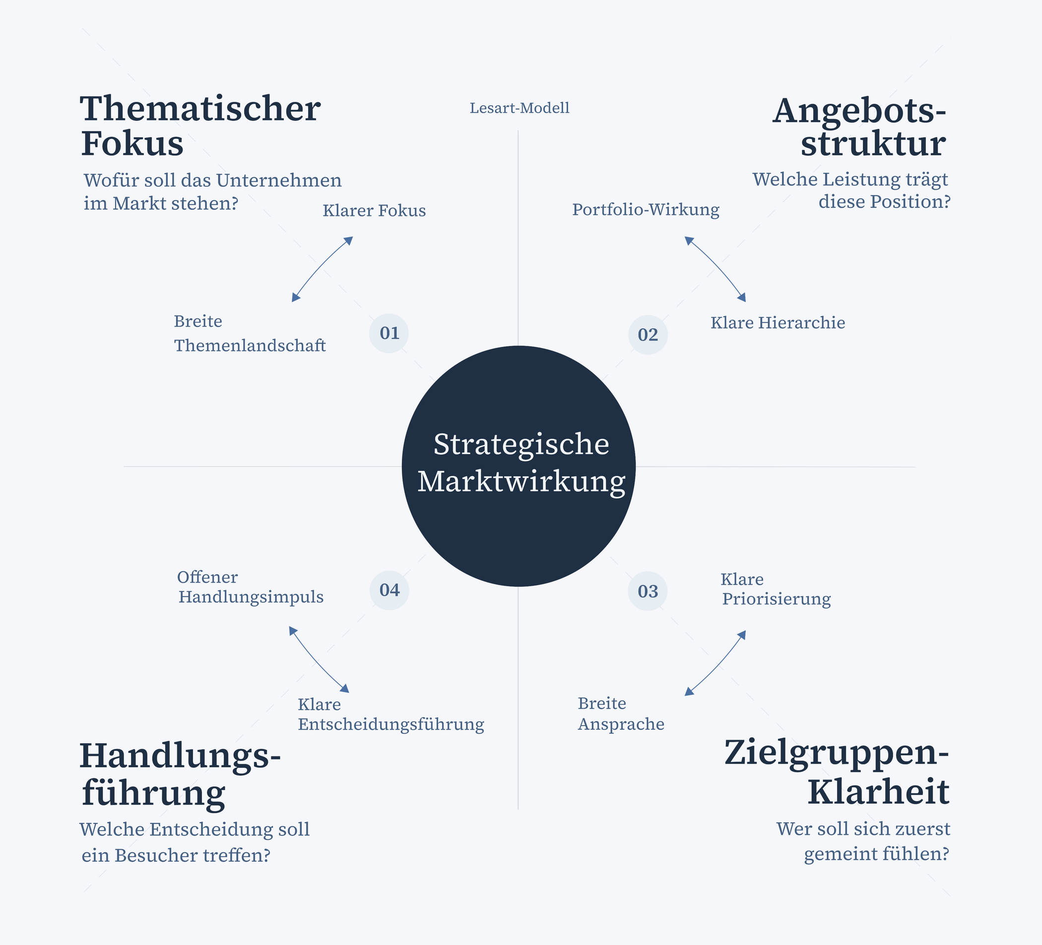 Lesart richtet sich an Geschäftsleitungen und Inhaber von Unternehmen – die keine eigene Marketingabteilung haben und keine aufwändigen Strategieprozesse wollen, aber ihren Webauftritt bewusst als strategisches Instrument führen möchten.